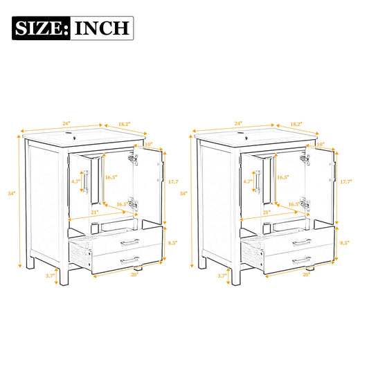 Bathroom Vanity With Sink, Cabinet & 2 Soft Closing Doors & Adjustable Shelf