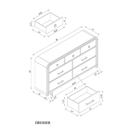 Augusta - Dresser, 7 Spacious Drawers, Block Feet - Beige Brown