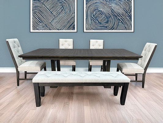 Lyncott - Large Upholstered Dining Room Bench - Gray / Brown