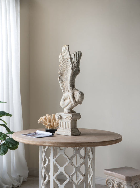 Round Wooden Dining Table With Ornate Cut Out Base - Brown / Antique White