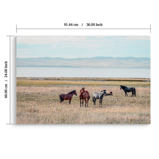 Horses Wall Art Decor, Western Farm Equine Canvas Picture Wild Animals Walking For Living Room - Brown / Cottage White