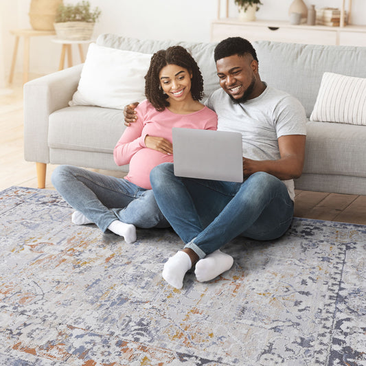 Maval - 8' X 10' Washable Area Rug - Blue / Cream