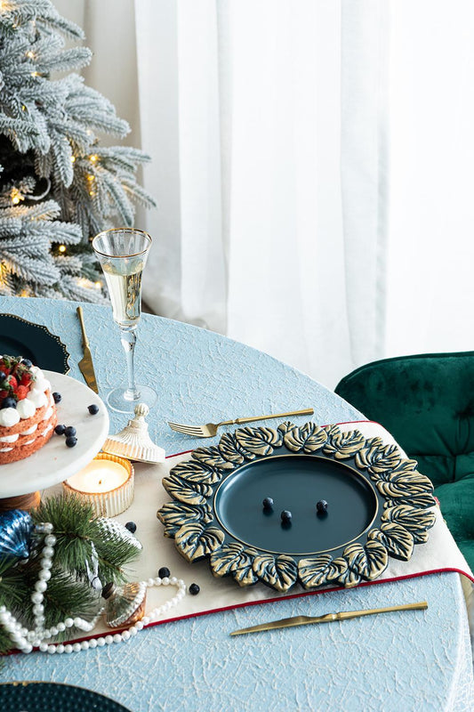 Plastic Charger Plate (Set of 6) - Blue / Gold
