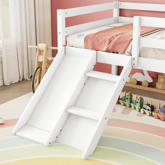 Low Loft Bed With Slide, Ladder, Safety Guardrails, No Box Spring Needed