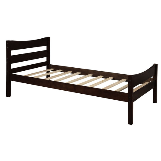 Twin Size Platform Bed With Headboard And Wooden Slat Support