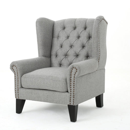 Modern Arm Chair With Tufted Back And Wooden Legs
