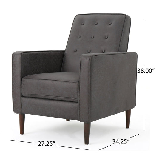 Macedonia - Mid Century Modern Button Tufted Fabric Recliner - Slate