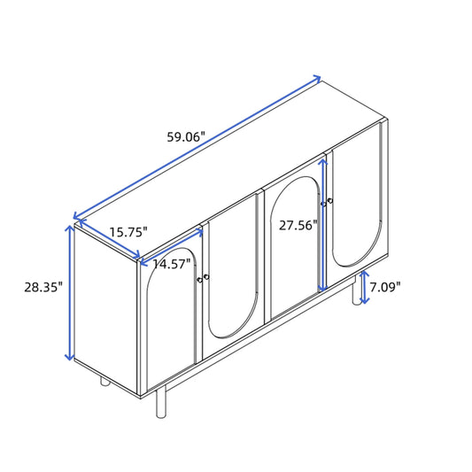Curved Sideboard Wooden Console Table With 4 Doors And Adjustable Shelves For Living Room - Blue