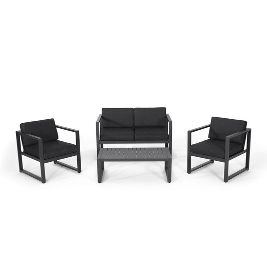 4 Piece Outdoor Chair Set With Weather Resistant Cushion - Dark Gray