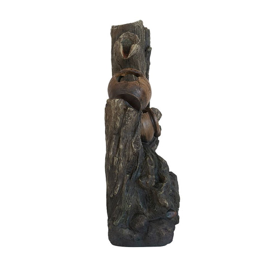 Decorative 3 Tier Tree Trunk Fountain With Lights And Pump - Brown