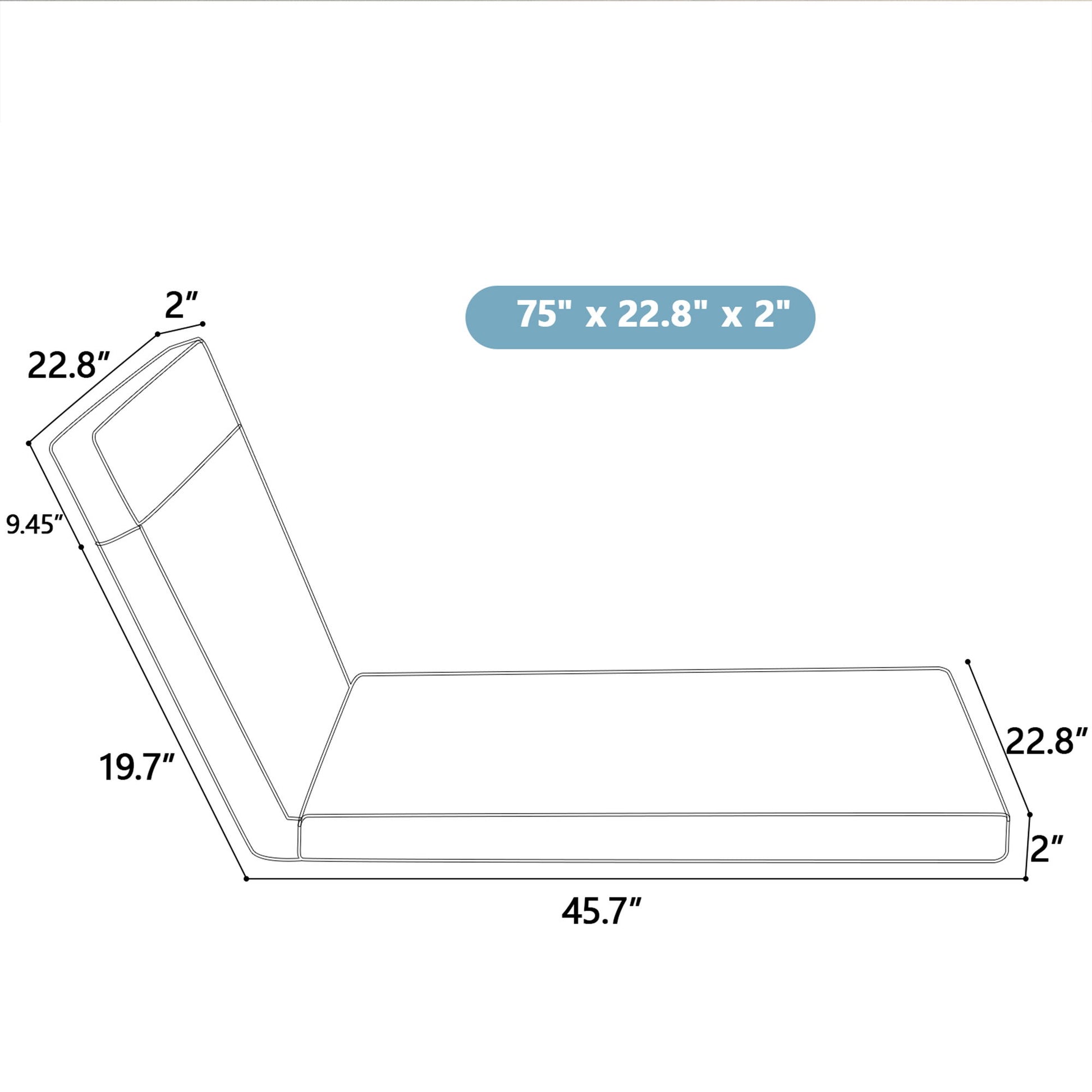 74.85"W x 22.8"D x 2.0"H - 13.0 lb