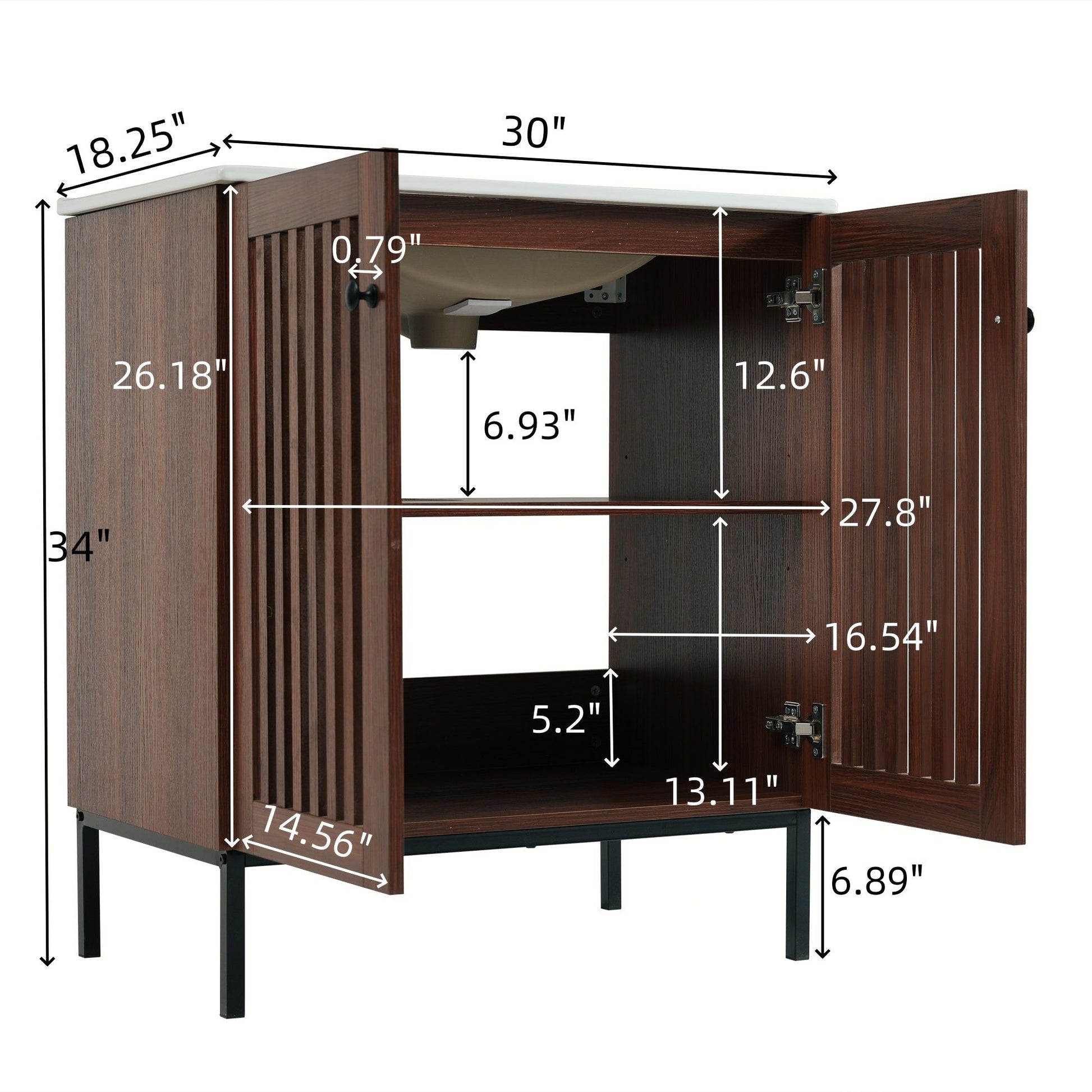 30" Vintage Bathroom Vanity With Ceramic Sink, Modern Bathroom Vanity Cabinet With 2 Soft Close Doors, Equpiied With 4 Sturdy Iron Legs - Antique Dark Brown
