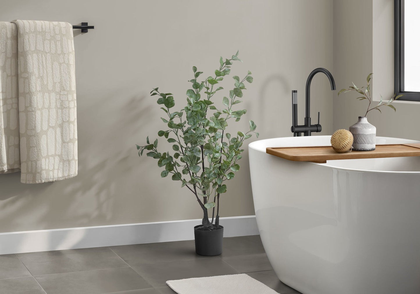 - Natural Aesthetic: Enhance any space with this 35" tall indoor artificial Eucalyptus tree, featuring a realistic appearance with 270 life-like green and frosted green leaves.