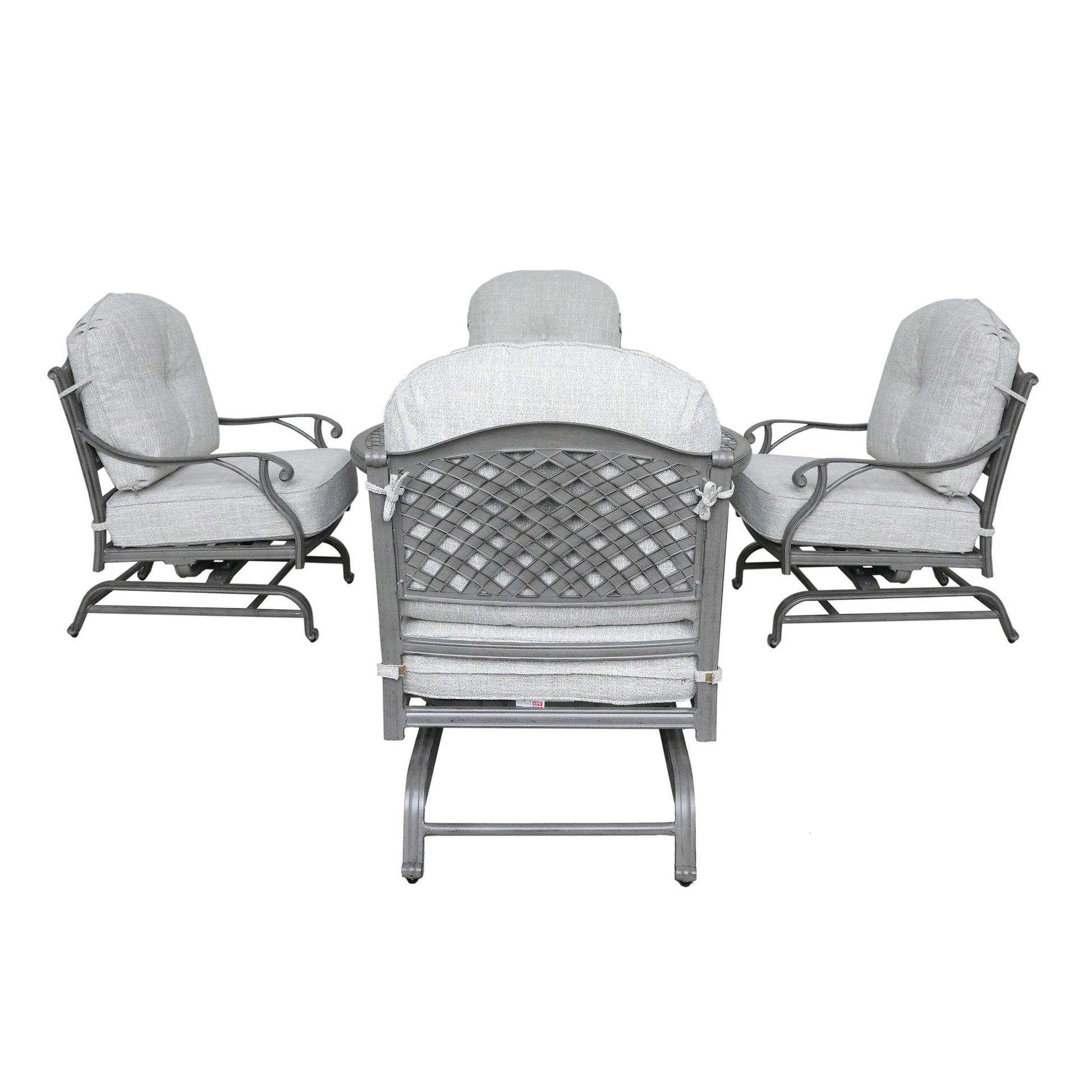 - Versatile 5-Piece Set: Includes 4 club motion chairs and a round fire pit table, ideal for various outdoor gatherings.