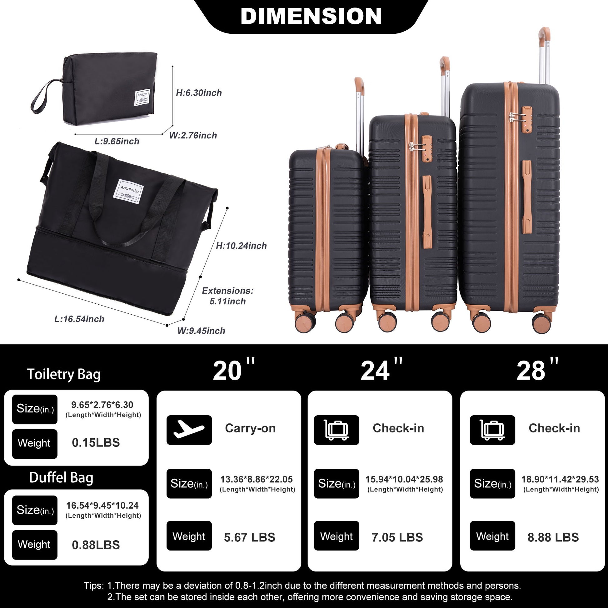 - Comprehensive Set: This 5-piece set includes a variety of luggage options: a 20-inch carry-on, a 24-inch check-in suitcase, a 28-inch large suitcase, a travel bag, and a toiletry bag, catering to all your travel needs.