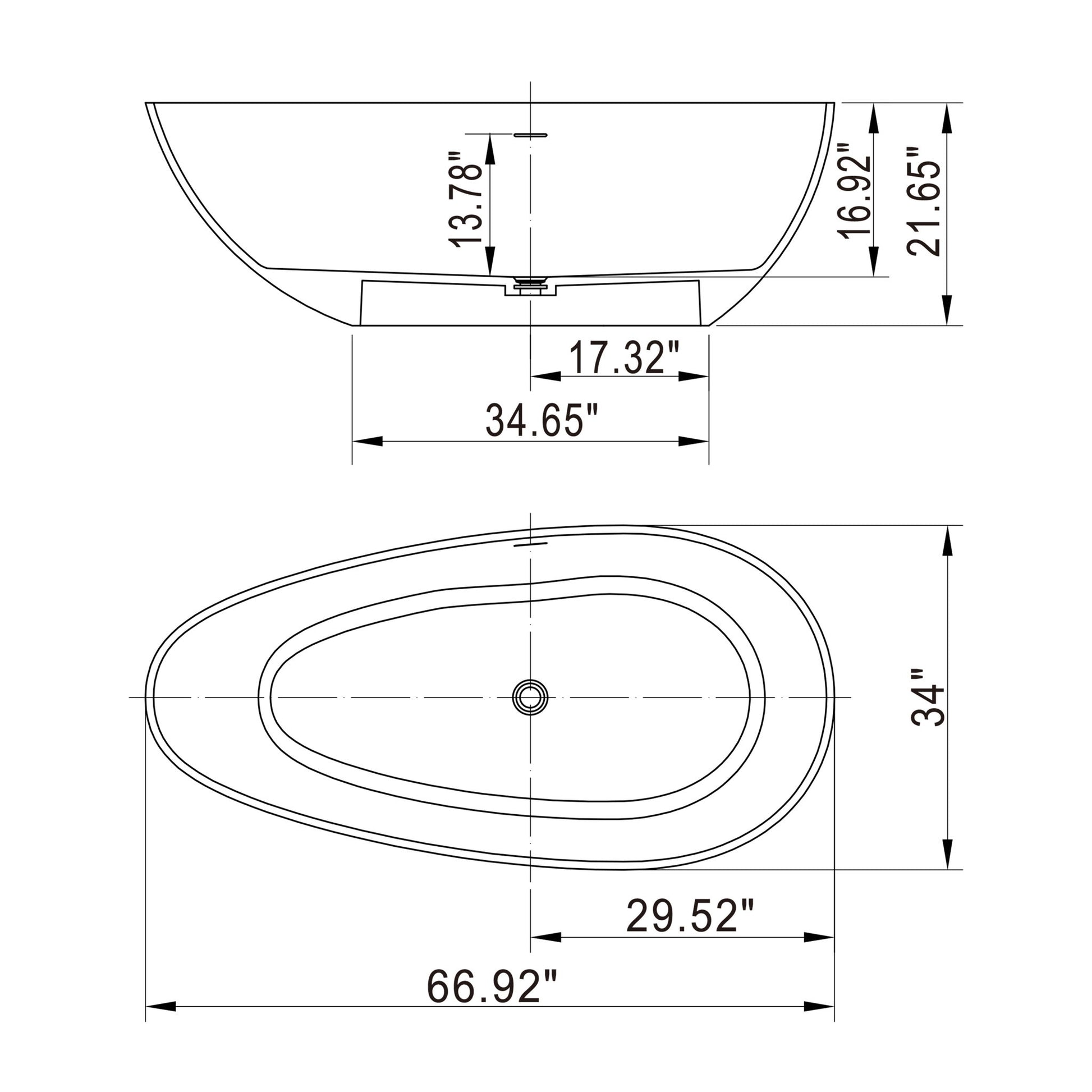 66.9" x 34" x 21.7" Freestanding Solid Surface Soaking Bathtub For Bathroom - Matte White