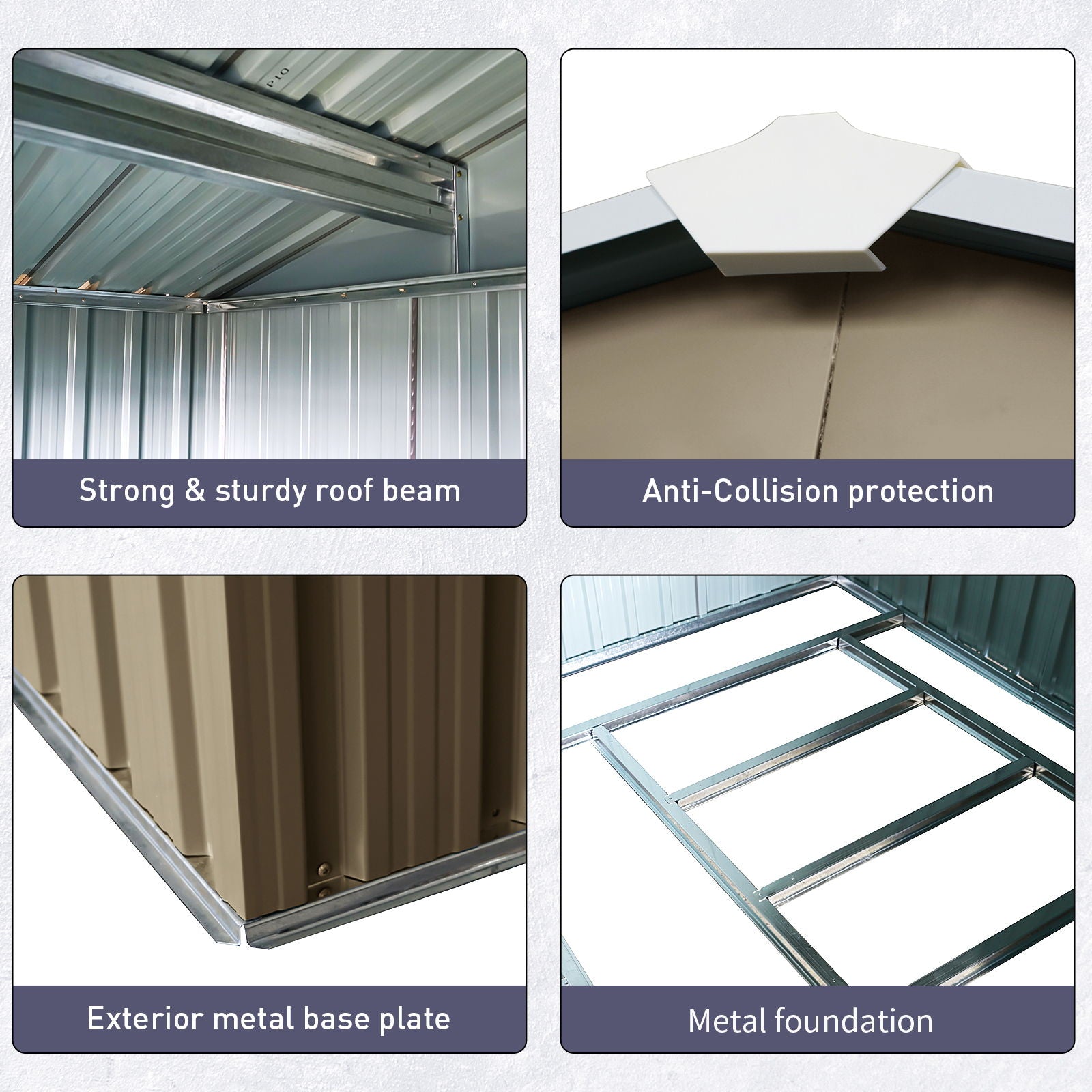 8Ft x 10Ft Outdoor Metal Storage Shed With Metal Floor Base, With Window - Gray