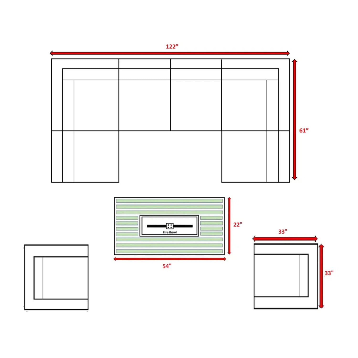 - Complete 9-Piece Set: Includes sofa, sectionals, armchairs, fire pit table, and 18 cushions