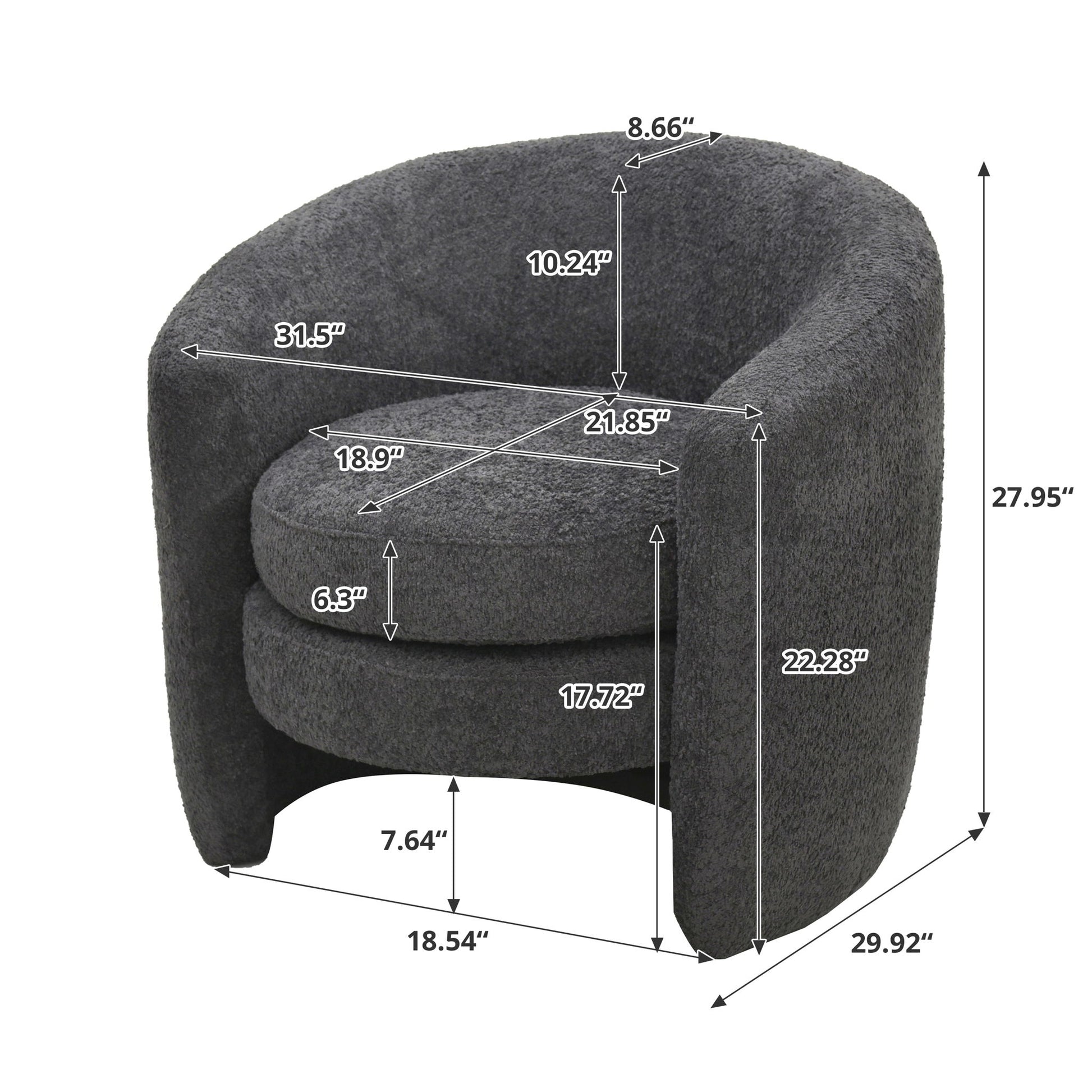 Affinity Modern Curved Back Upholstered Accent Chair With Soft Cozy Boucle Fabric - Dark Gray