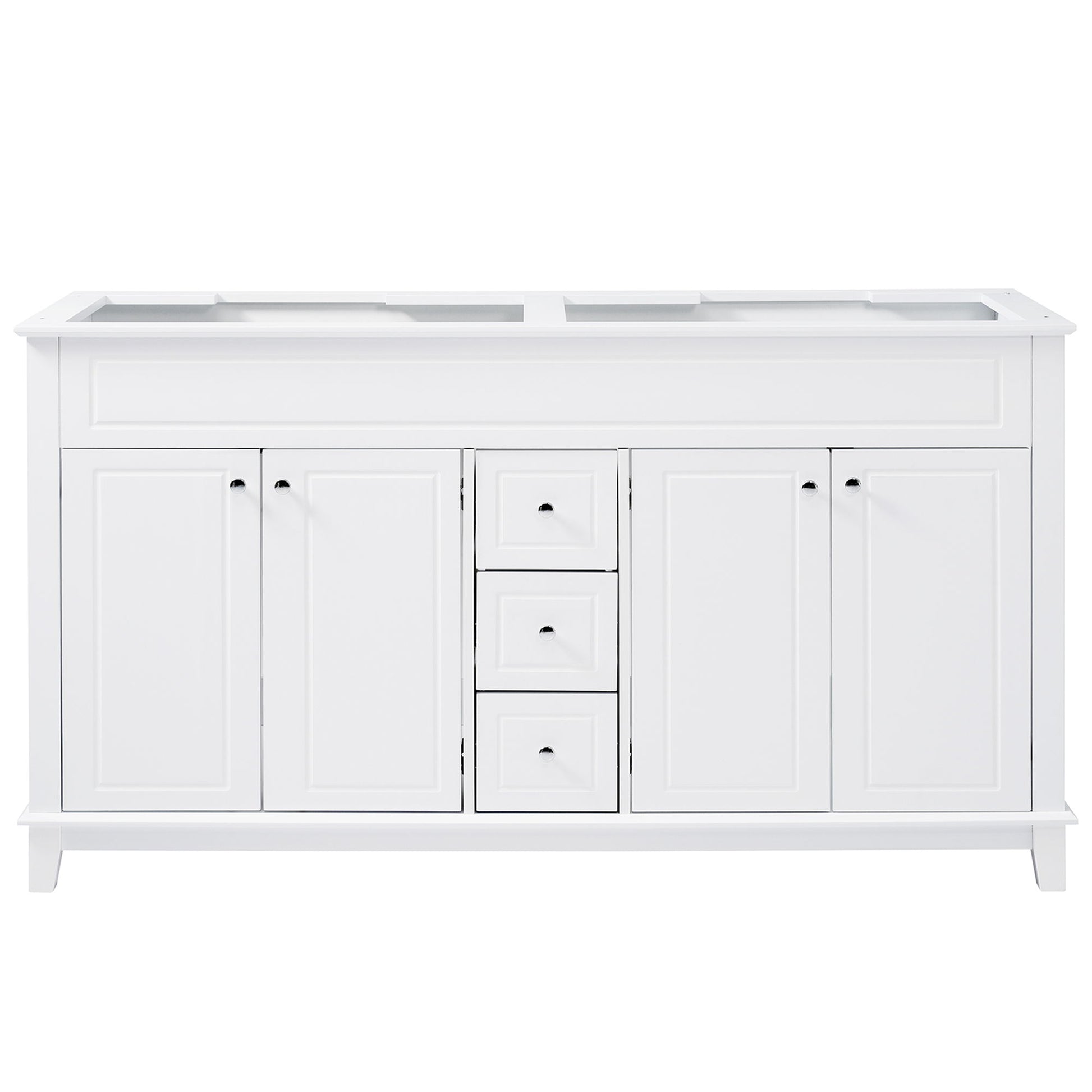 Bathroom Vanity Cabinet Only, 3 Drawers & 4 Doors With Double Layer Shelves - White
