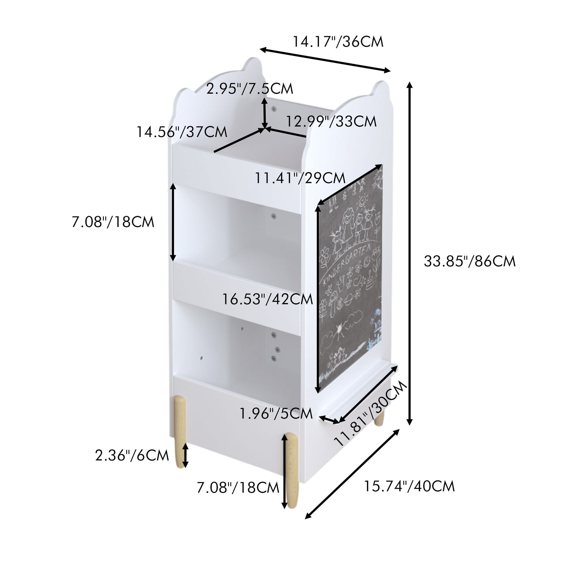 Bear Shaped Bookshelf With Chalkboard Side, 3 Tier Storage Organizer For Playroom - White