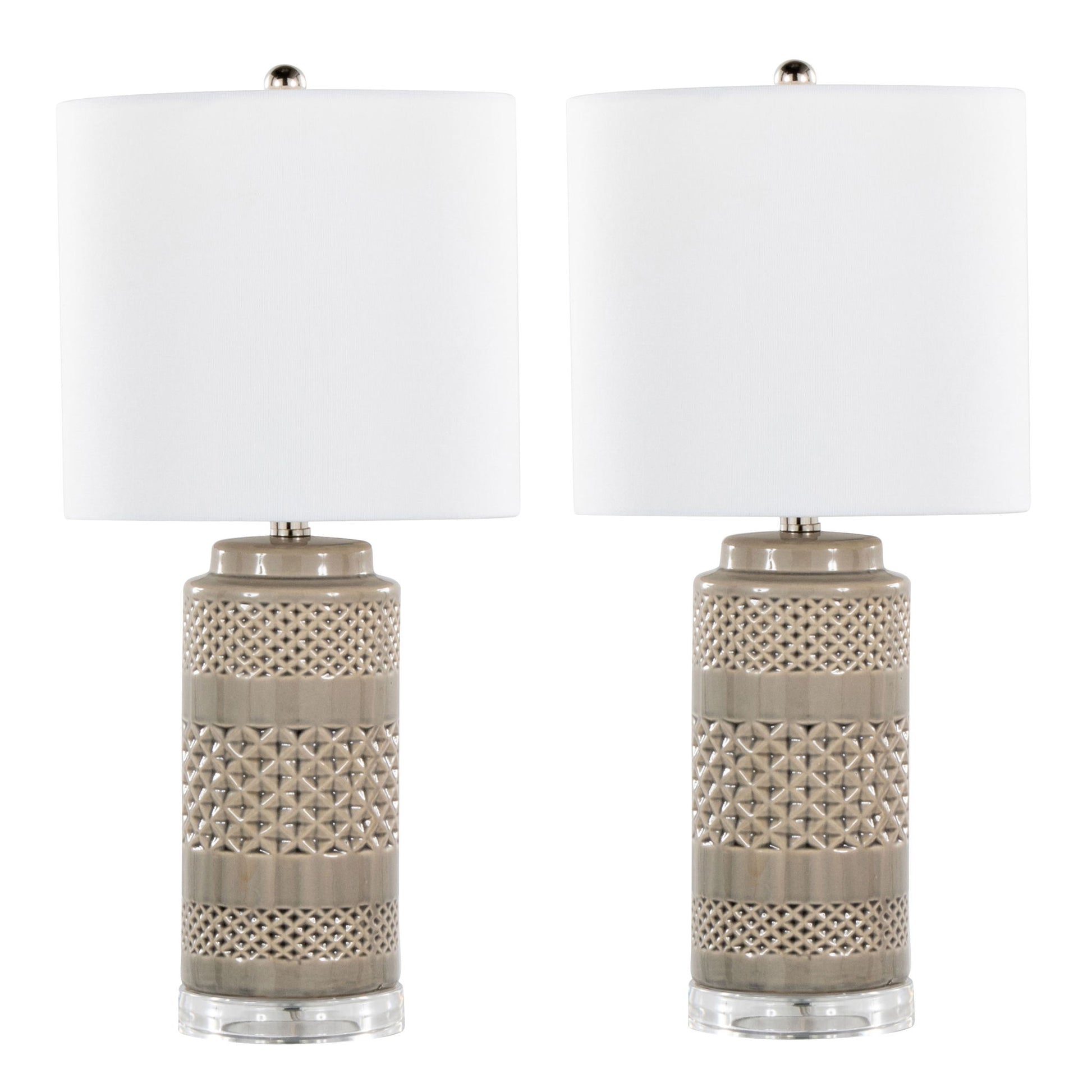 Casa - Contemporary Table Lamp (Set of 2) - Opal Gray / Polished Nickel / White