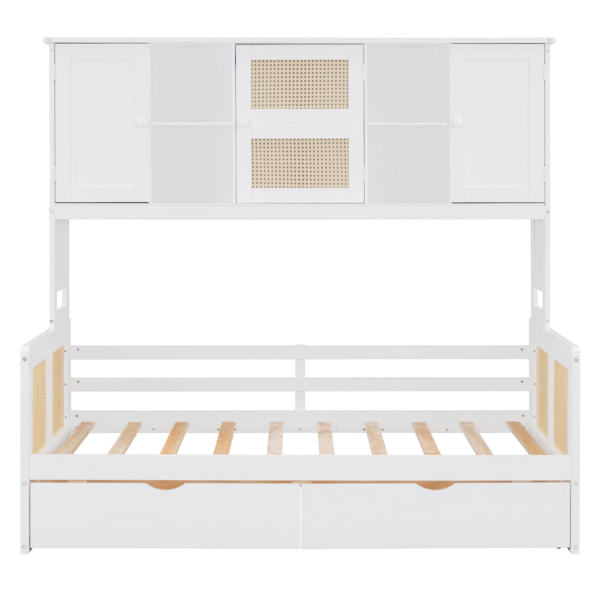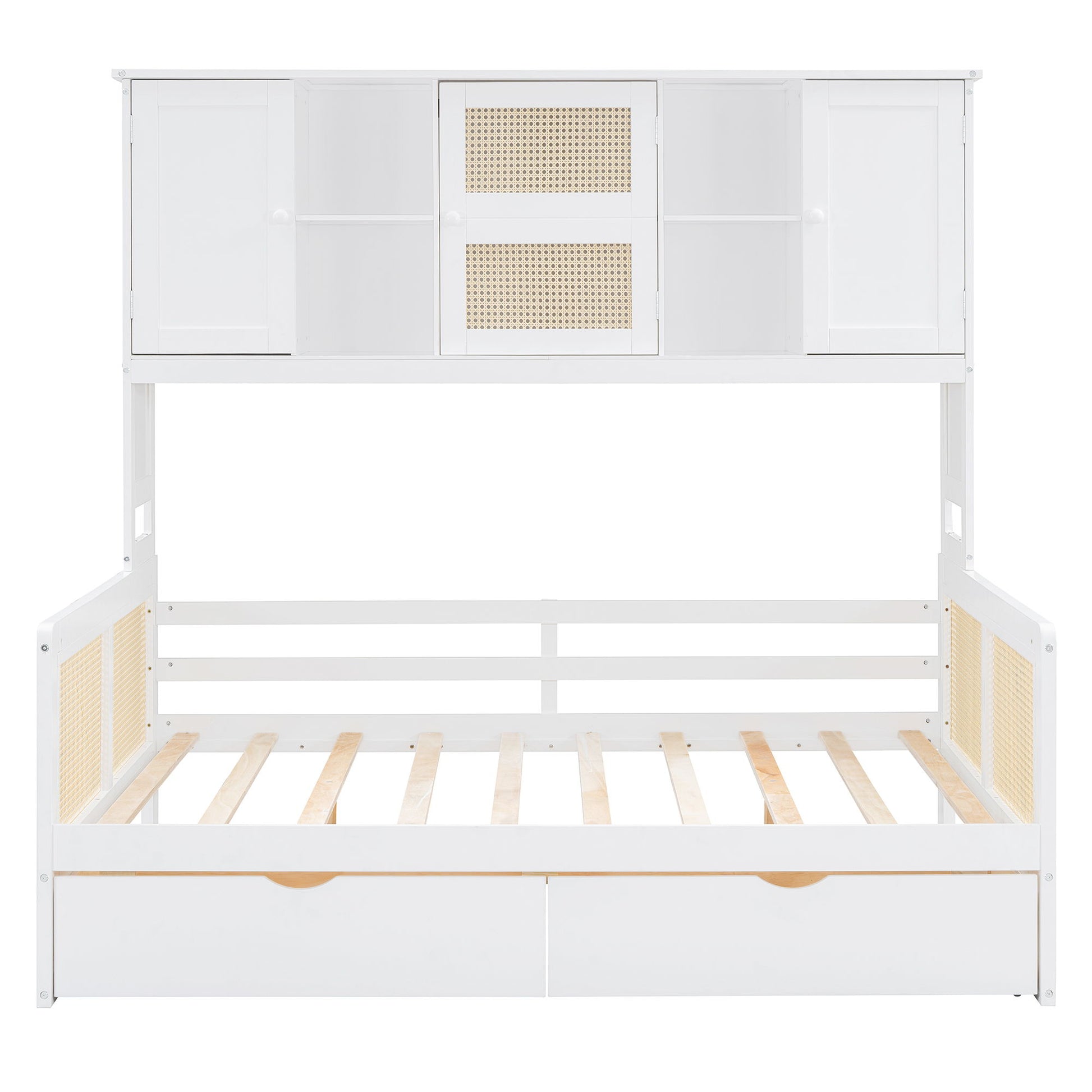 Full Size Wooden Daybed With 2 Drawers, And All In One Cabinet And Shelf - White