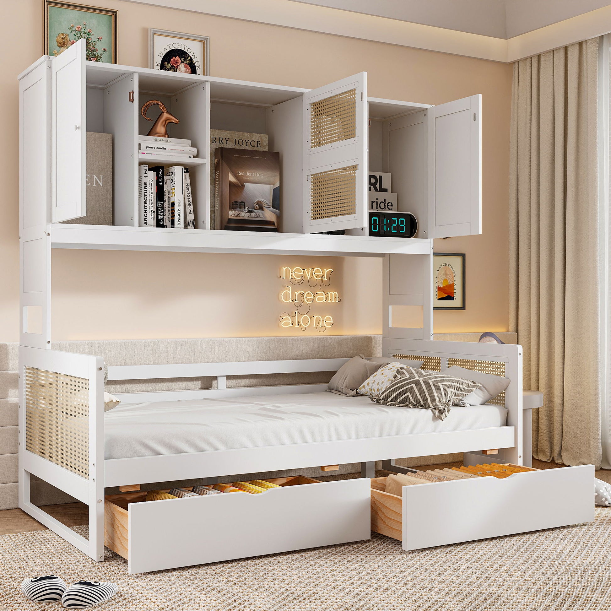 Twin Size Daybed With 2 Drawers, And All In One Cabinet And Shelf - White