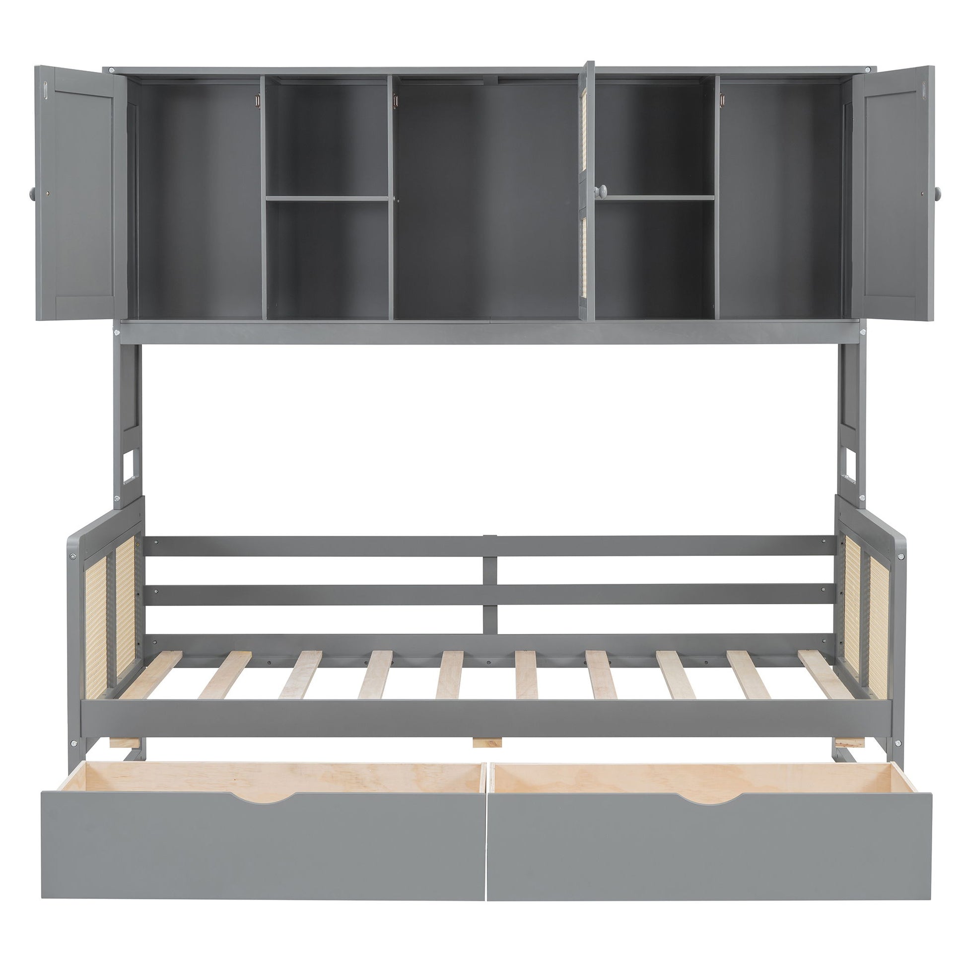 Full Size Wooden Daybed With 2 Drawers, And All In One Cabinet And Shelf - Gray