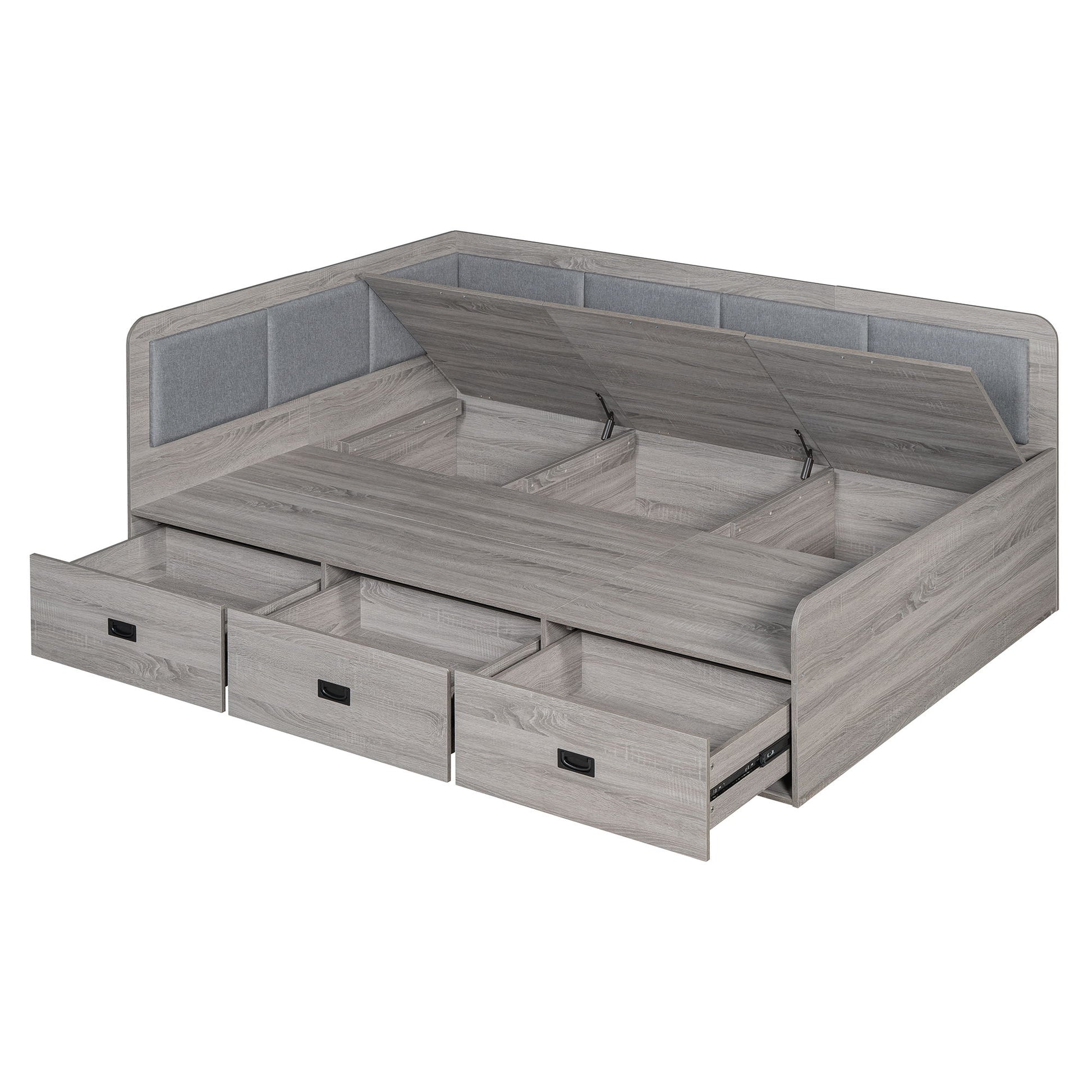 Full Size Daybed With 3 Drawers And 3 Storage Compartments - Gray