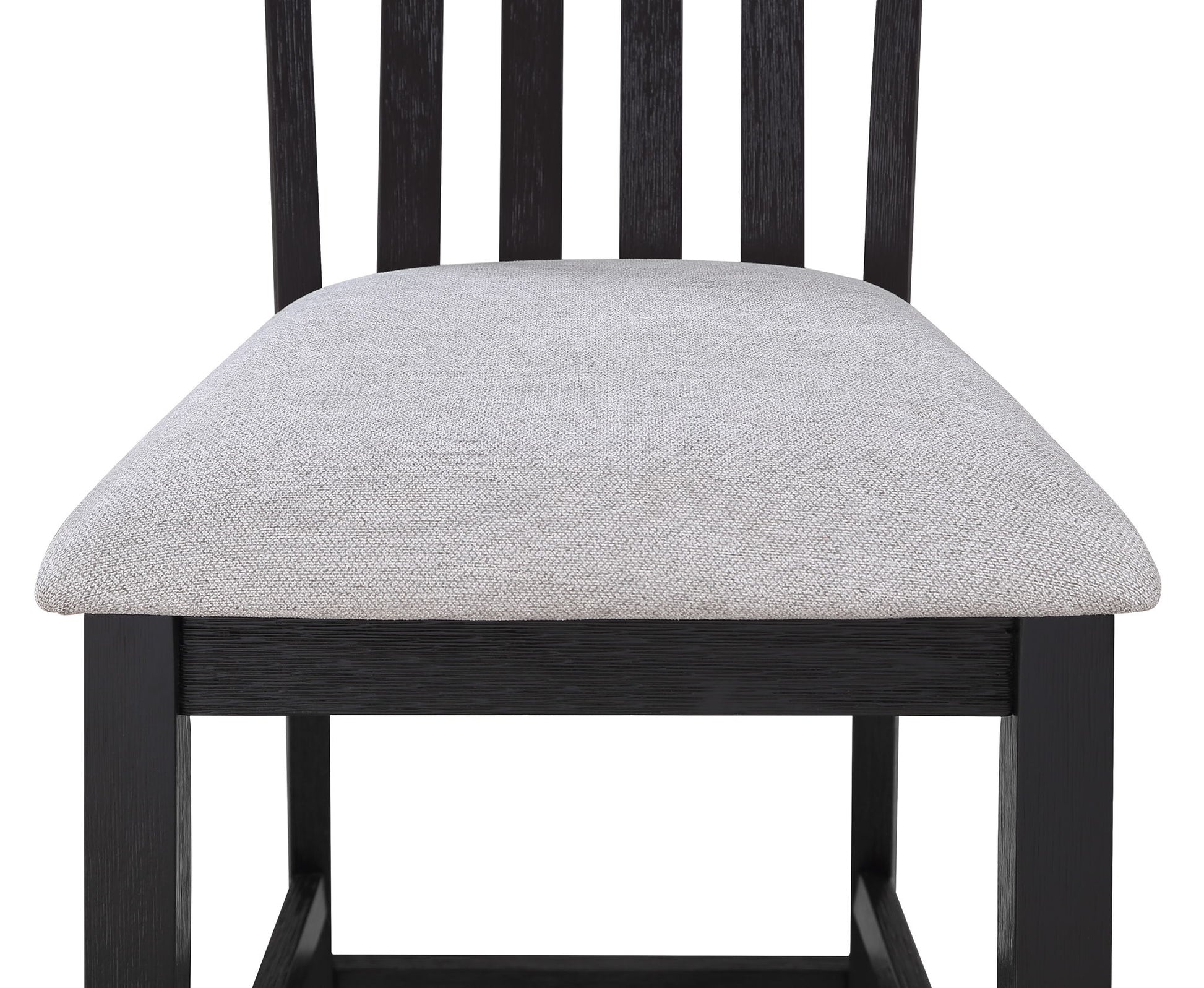 This counter-height dining group marries modern sophistication with casual dining. The ensemble includes a robust table in a 2 toned finish that brings a bold statement to your dining space. The clean lines and solid construction reflect contemporary design trends, while the high-back chairs and spacious bench boast a complementary gray upholstery, adding a touch of refined comfort. The bench option introduces a versatile seating choice, perfect for family gatherings.
