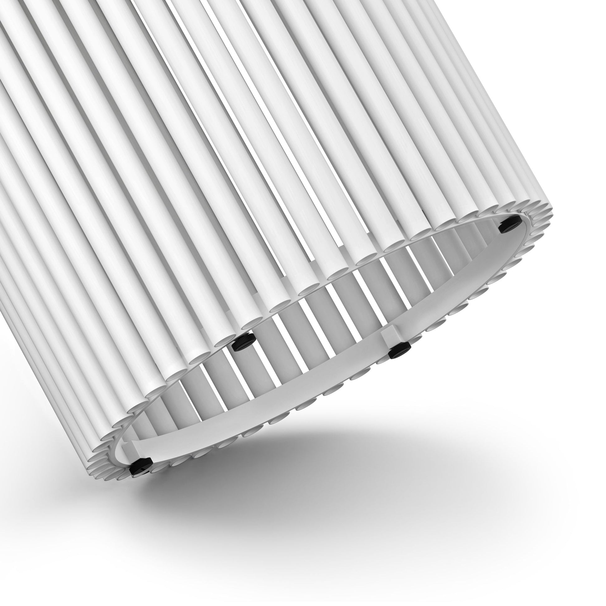 - Features solid wood table top and tall cylinder shape with unique pipe design base