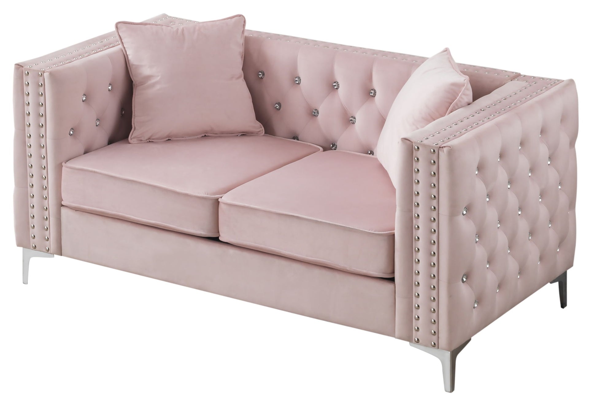 - Glamorous Look: Chromed steel legs give this loveseat an updated glam look, adding a touch of sophistication to any room.