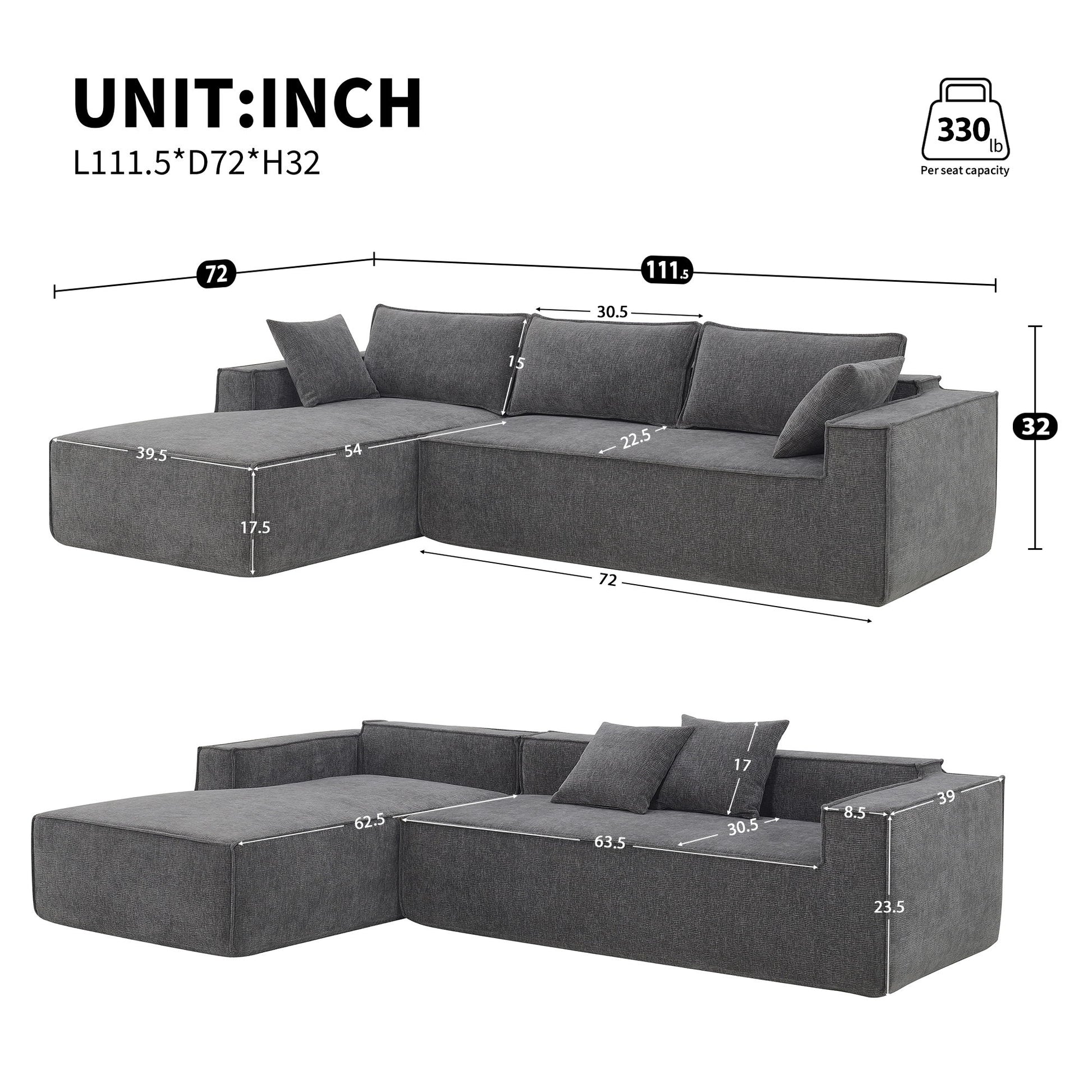 2 Pices Free Combination Minimalist Style Modular Sectional, Wrinkle Resistant Couch Set L Shaped Compressed Sofa For Living Room - Gray