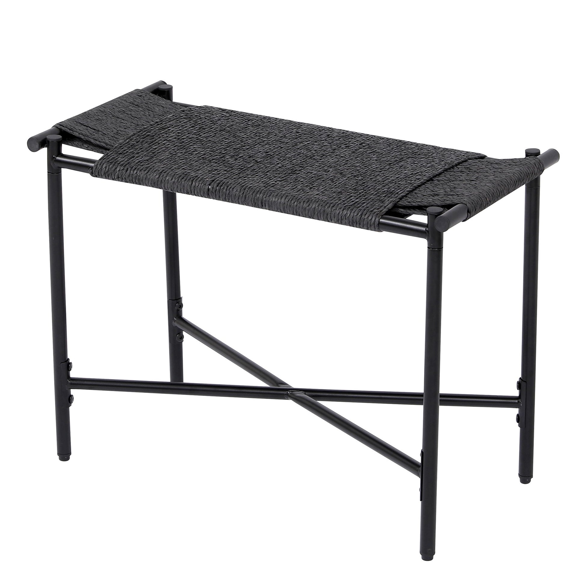 Handwoven Paper Rope Foot Rest Shoes Stools Ottomans For Entryway, Living Room, Bedroom & Office - Black