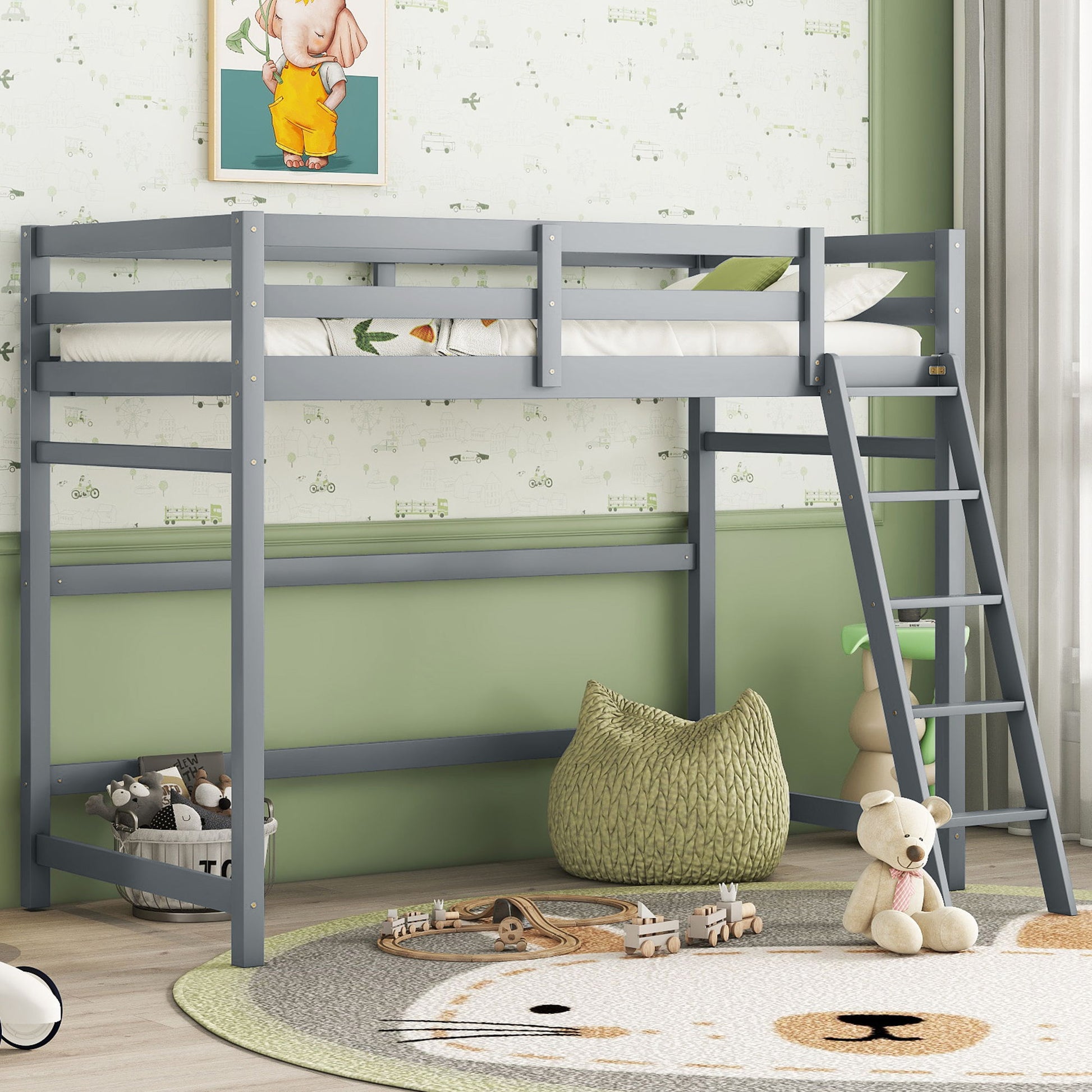 - Comprehensive Design: The loft bed features a sturdy construction with a built-in inclined ladder that has wider steps for easy and safe climbing up and down.