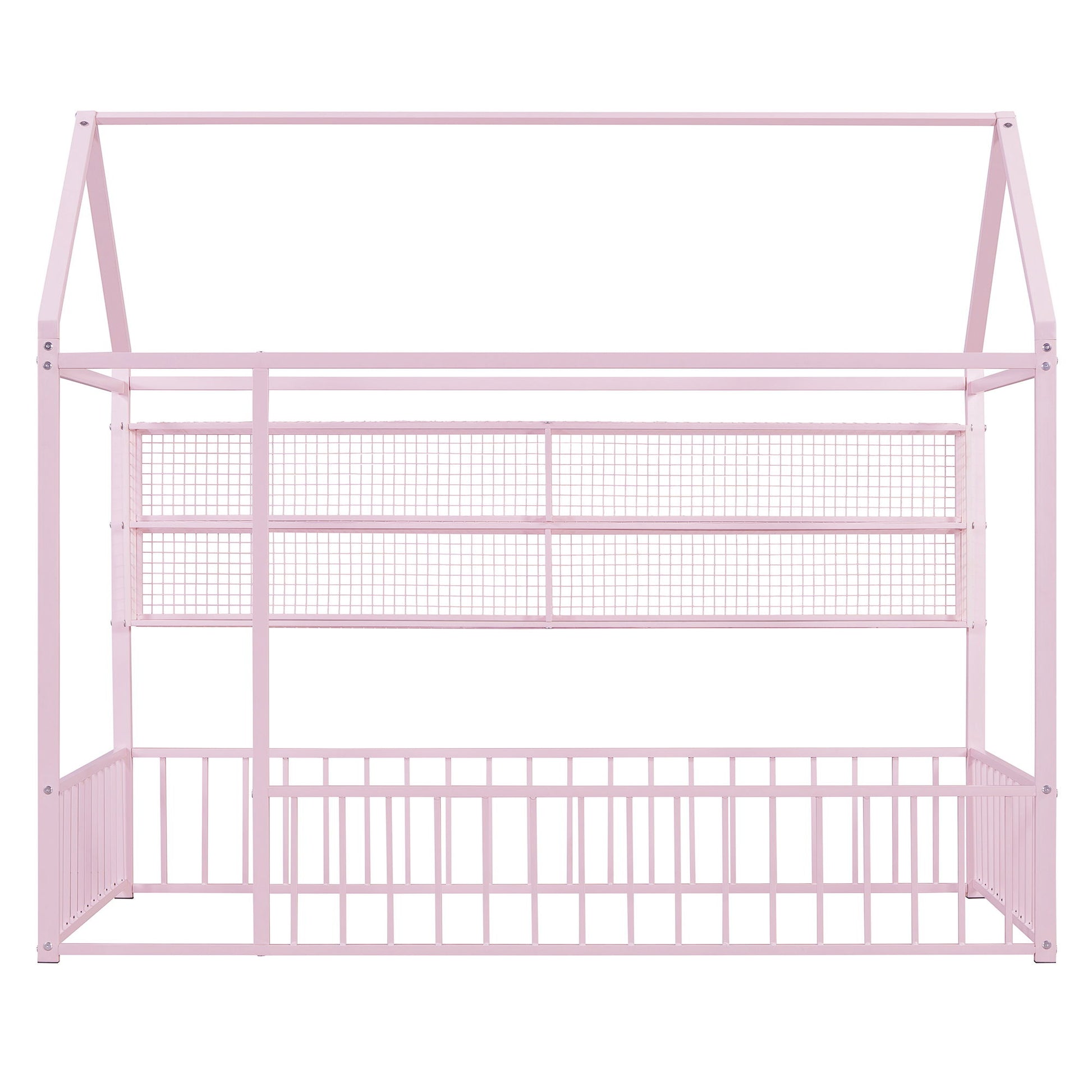 Full Size Bed House Frame With Fence And Shelves - Pink