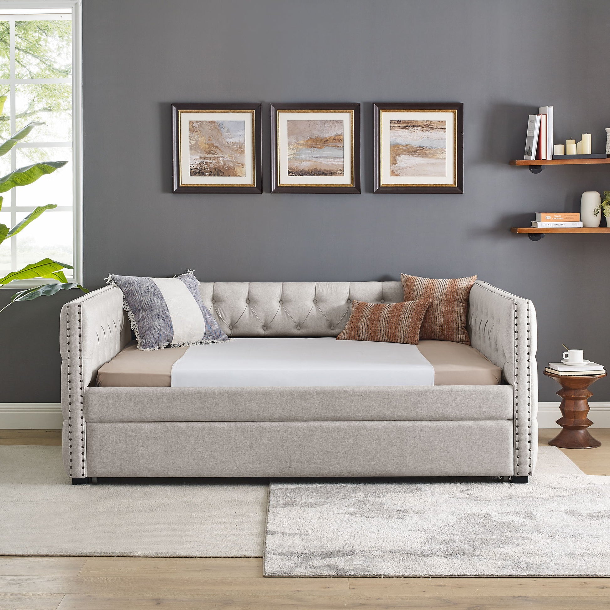 Inspired Upholstered Daybed With Trundle, Button Tufted