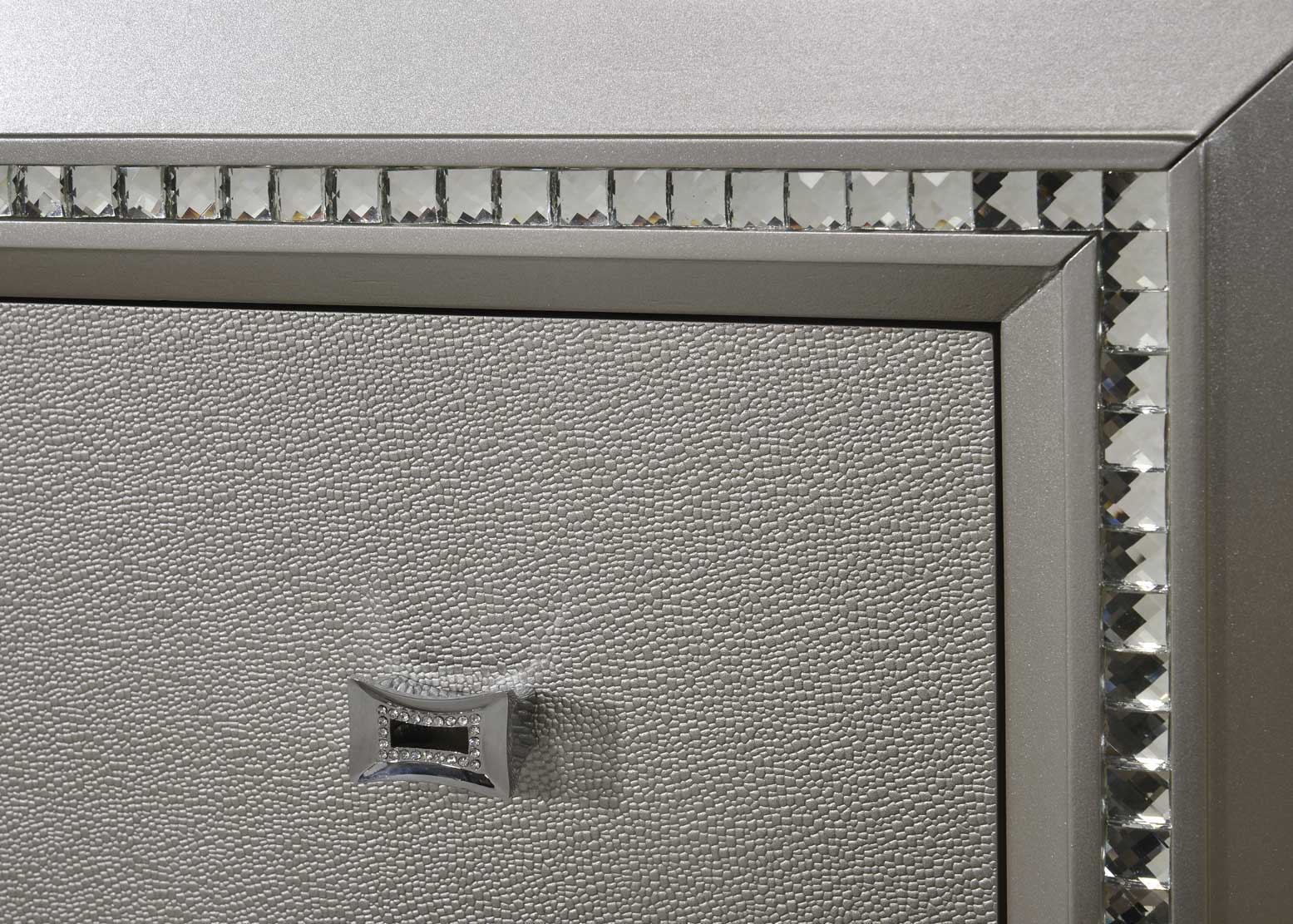- Stylish Design: The bed features an elegant arched headboard with PU leather upholstery and channeled tufting. It is enhanced with a rectangular low-profile footboard that boasts crystal-like sparkling trim and embossed texture fronts, adding a touch of sophistication to any bedroom.