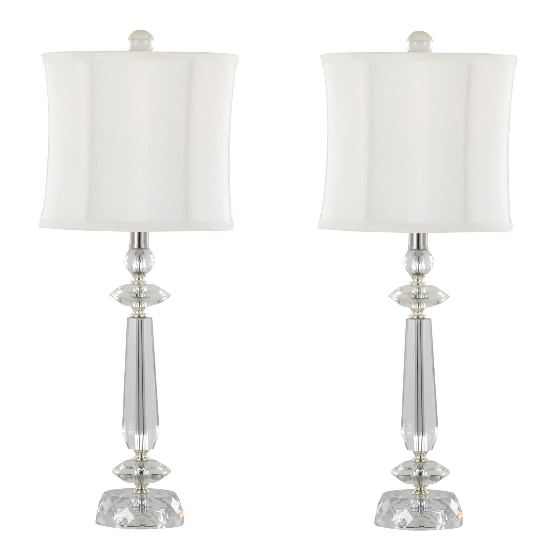 Karat - Contemporary Crystal Table Lamp (Set of 2) - Clear Crystal / Chrome / White Softback