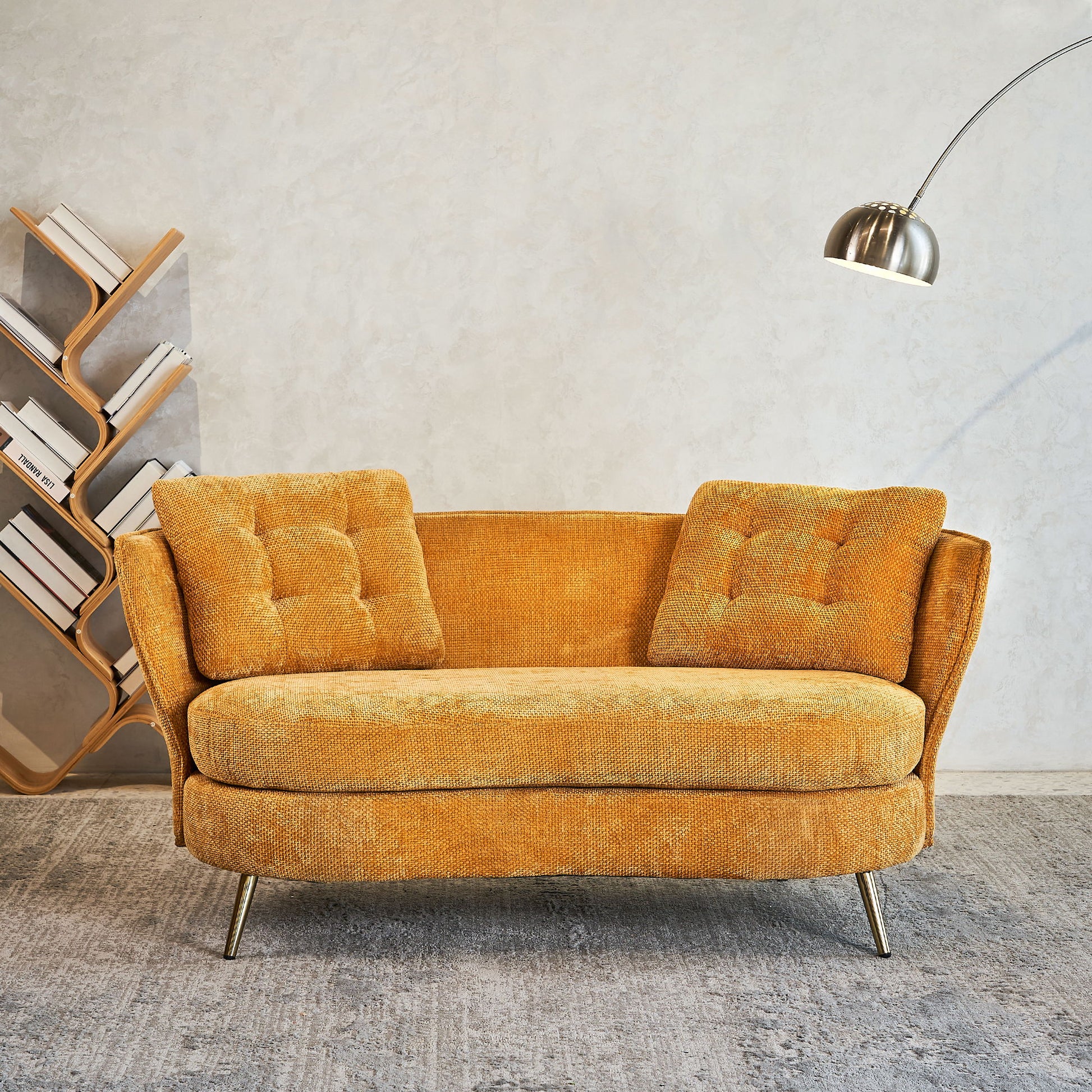Polyester Fiber Loveseat Sofa Upholstered Couch With Golden Metal Legs Club 2 Seat Sofa For Living Reading Room Bedroom Apartment Small Space Dorm - Yellow