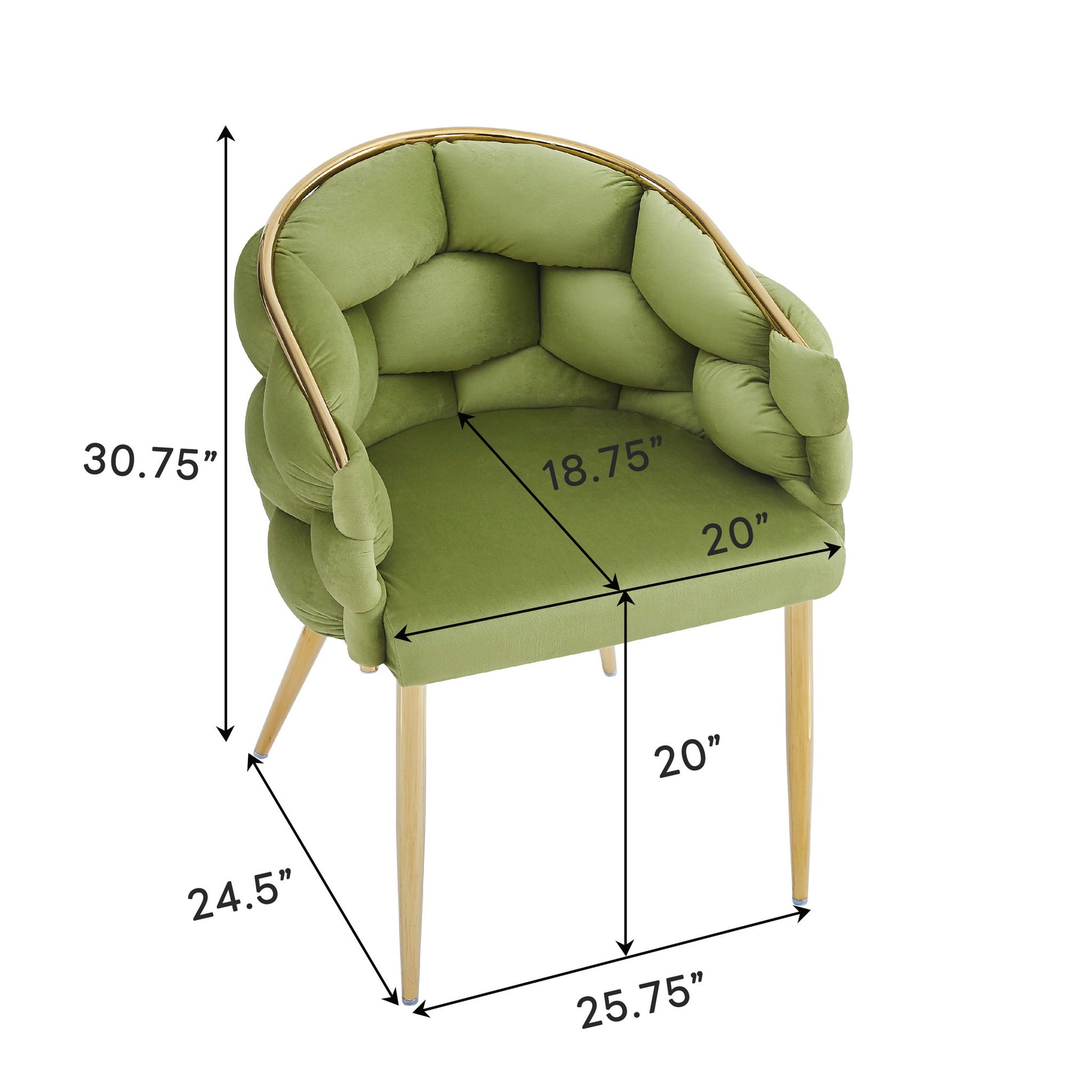 Luxury Handmade Accent Chair (Set of 2) With Gold Legs, Modern Green Velvet Armchair For Living Room And Bedroom - Green