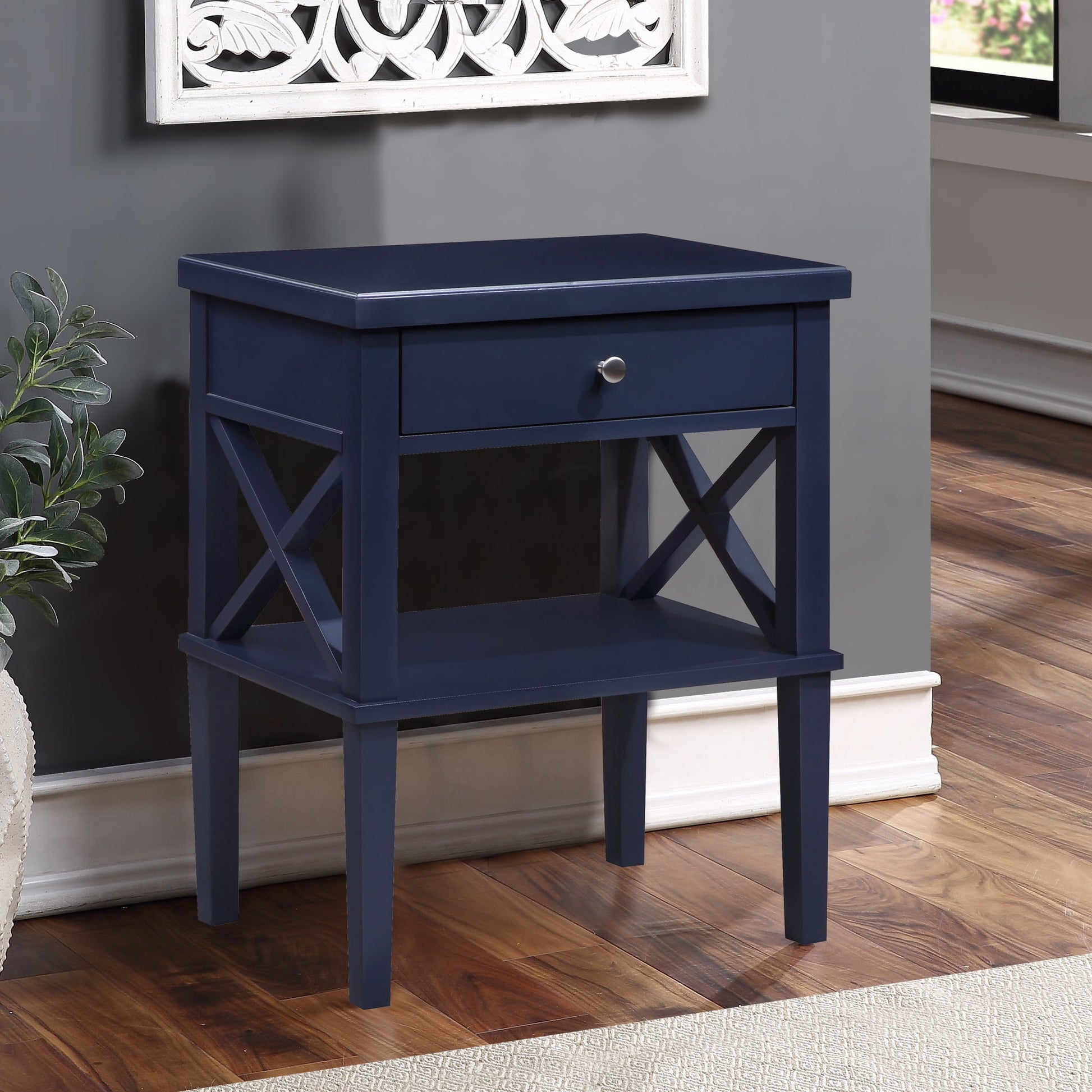 Madison - Nightstand With Full Extension Drawer And Open Shelf - Dark Blue