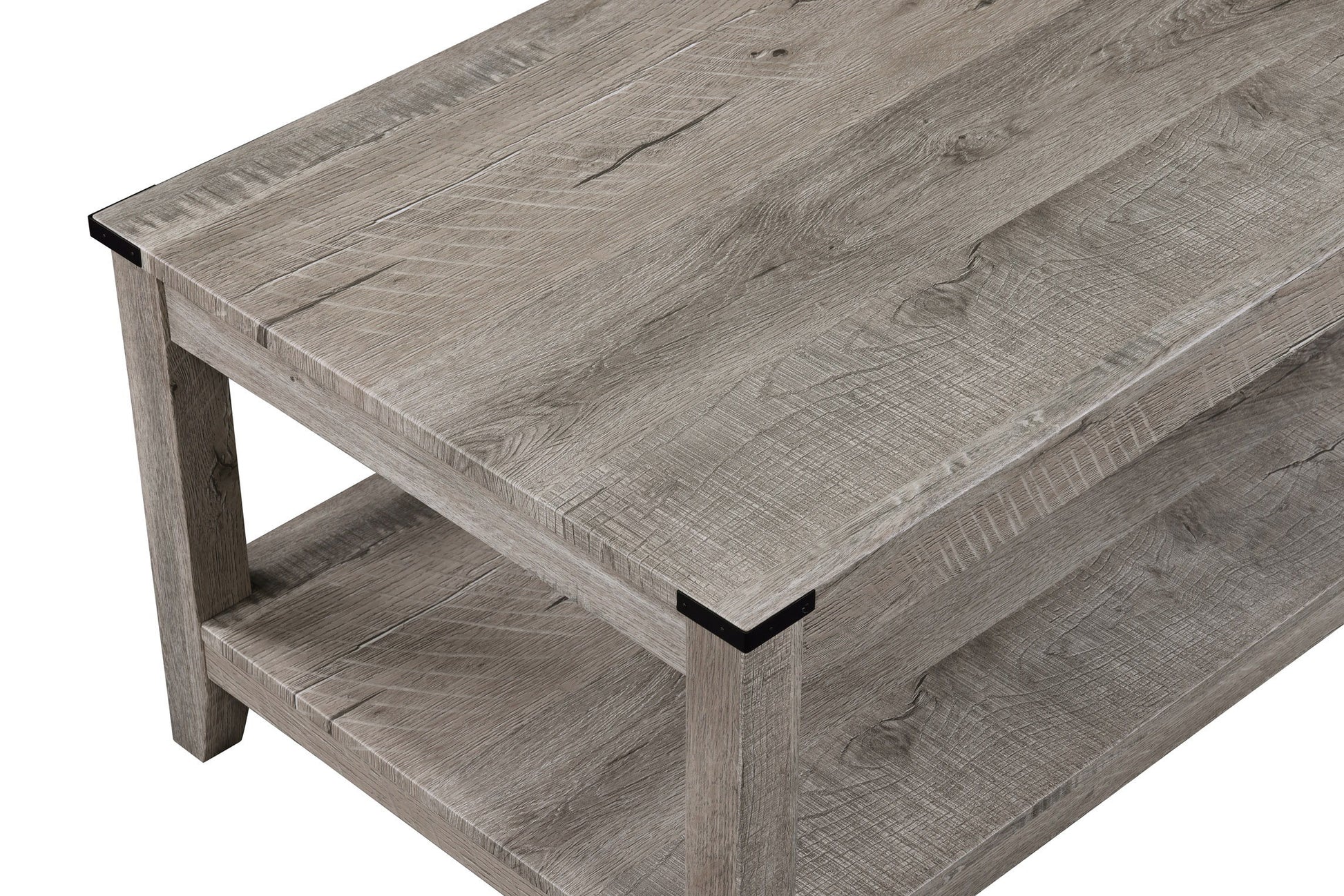 Embrace the essence of sophisticated simplicity with this cocktail table set. Featuring a faux wood finish with a fine-grain appearance, the set evokes a feeling of warmth and comfort. The minimalist design paired with the functionality of the dual-level surfaces makes this collection the perfect union of form and function, resonating with the modern home aesthetics.