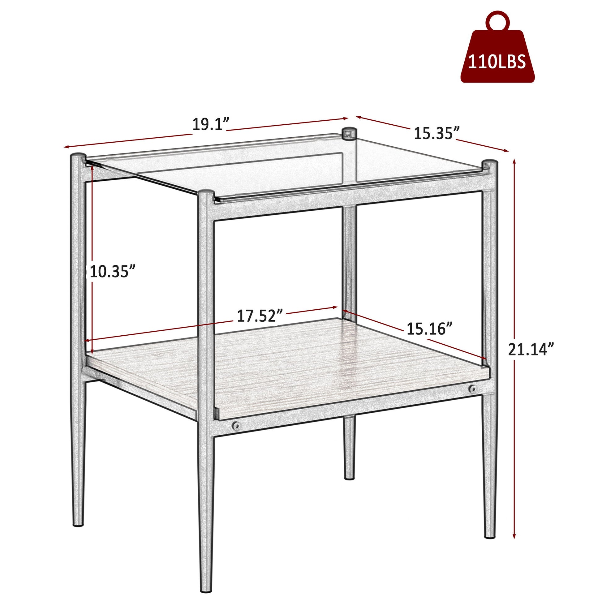 - Item Dimensions: 19.1"L x 15.35"W x 21.14"H. Load-bearing capacity of 110lbs.