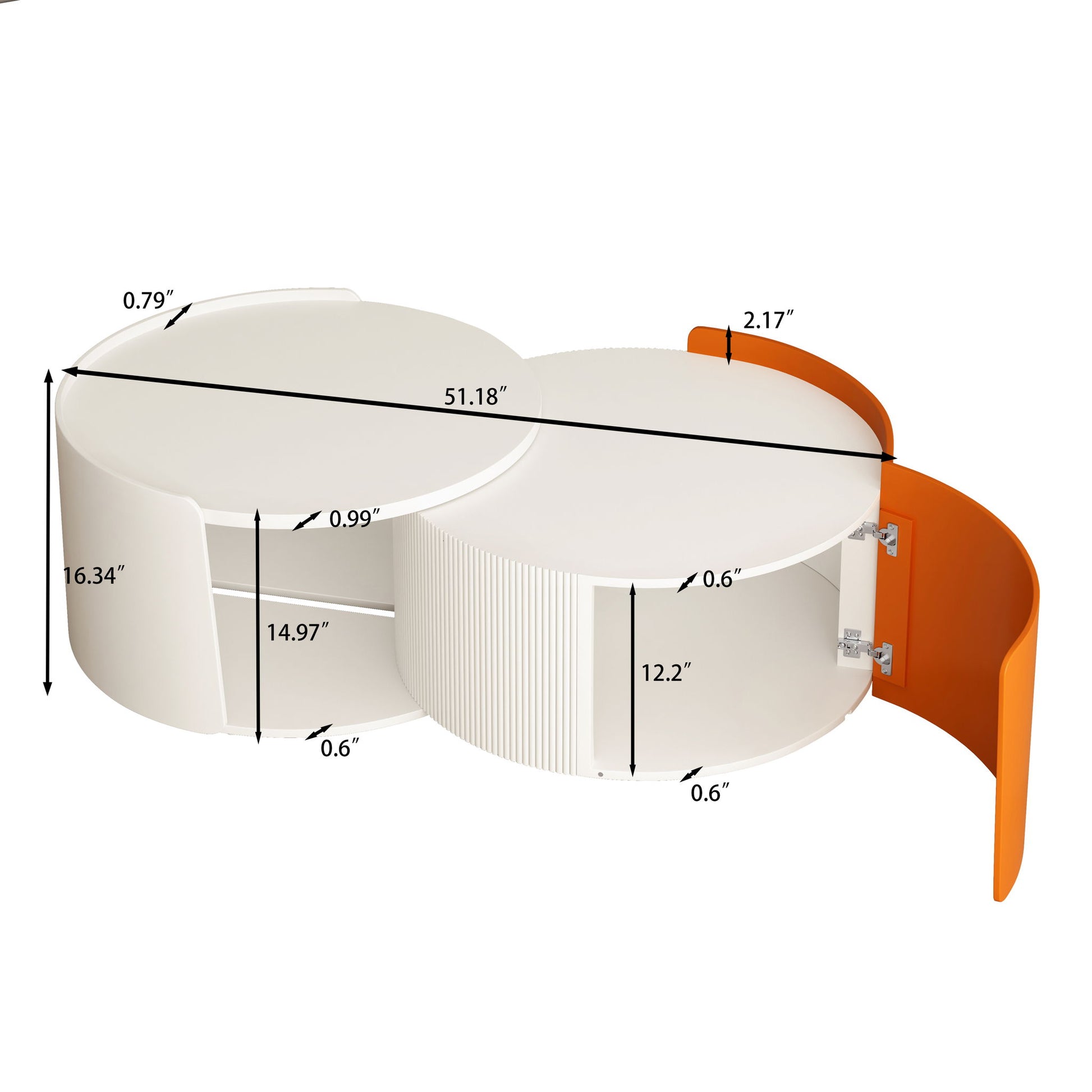 Round Nesting Coffee Table With Extendable Sliding Top And Orange Accent - Antique White