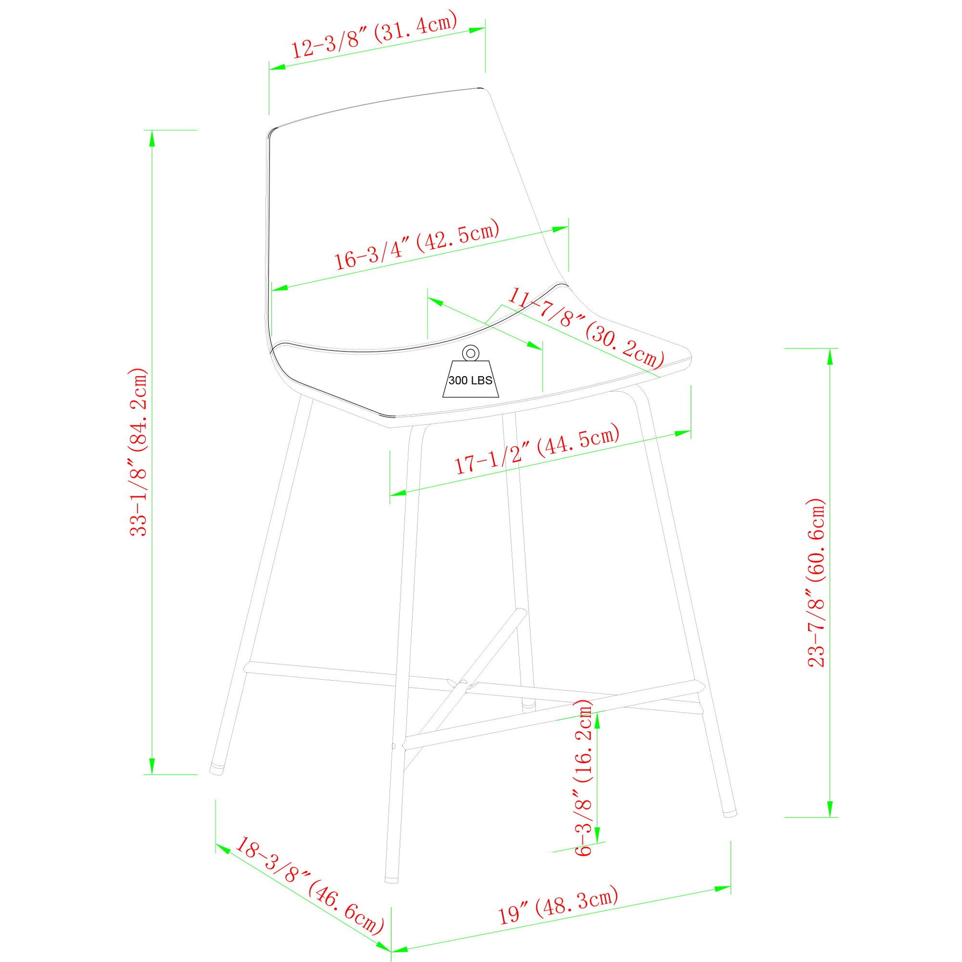 19.0"W x 18.38"D x 33.18"H - 13.0 lb