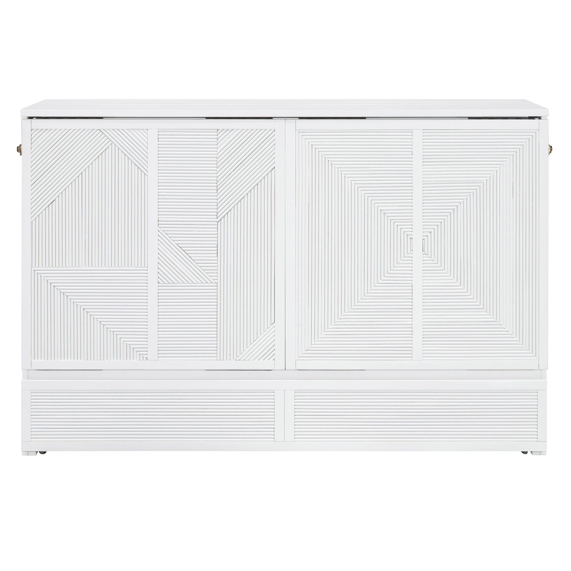 Queen Size Murphy Bed With Large Drawer, USB Ports And Outlets - White
