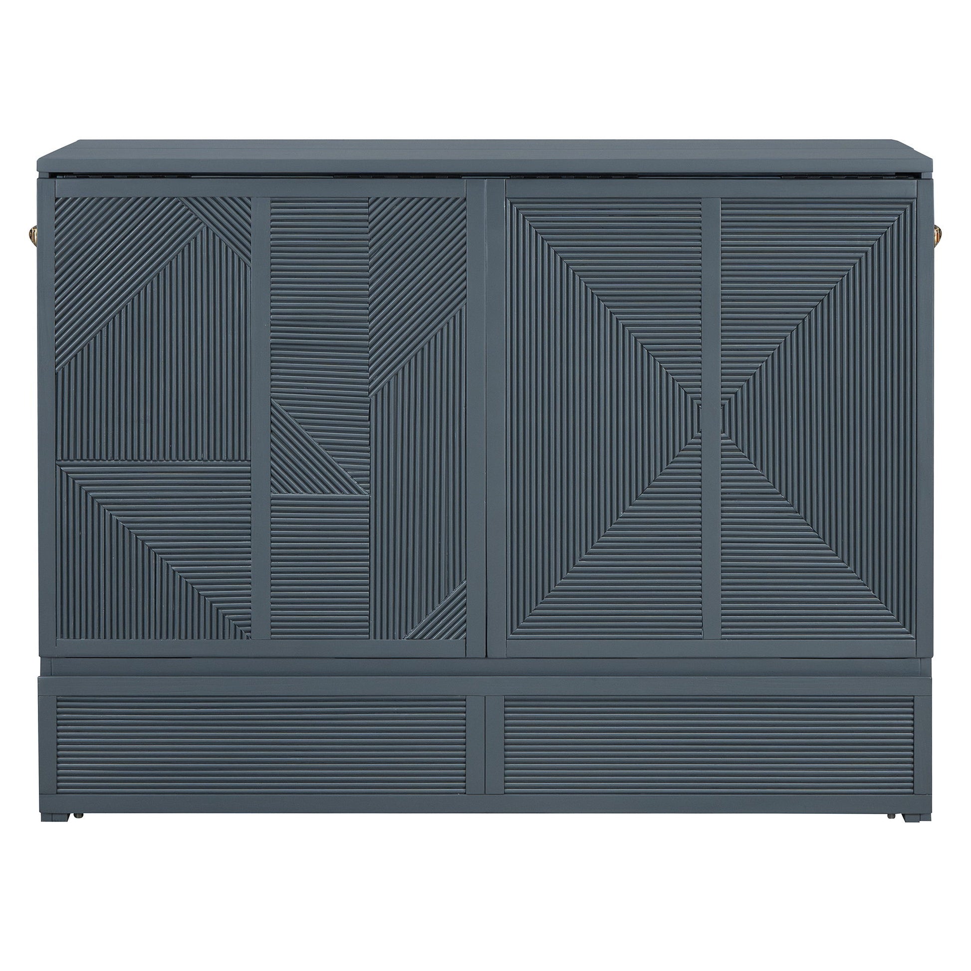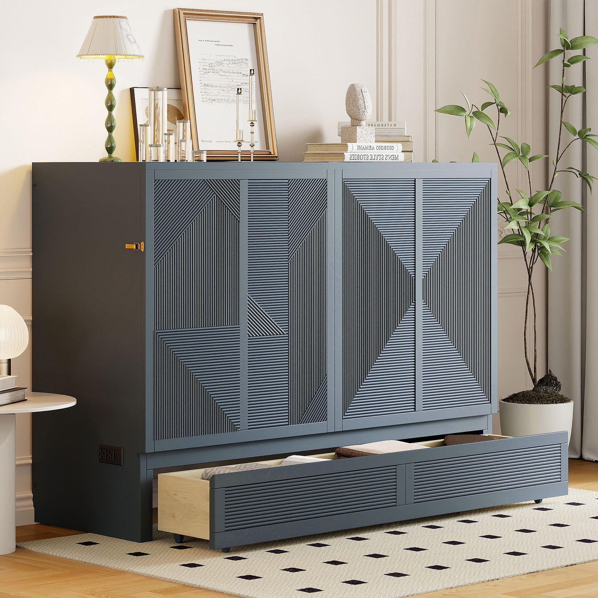 Queen Size Murphy Bed With Large Drawer, USB Ports And Outlets - Gray