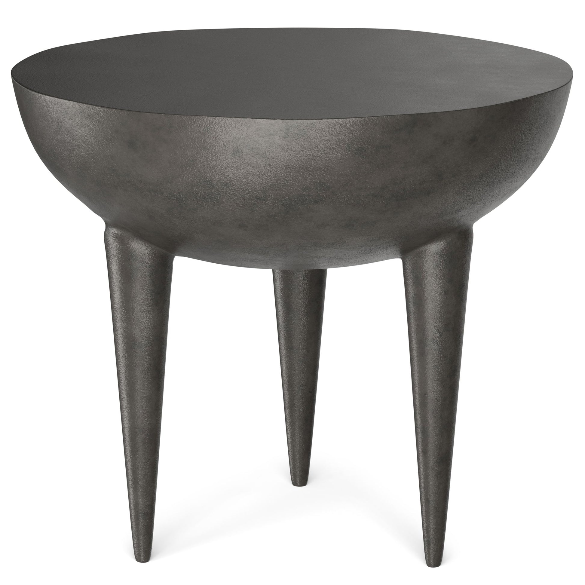 - Features a convex top with a round tabletop and three (3) tall, tapered legs.